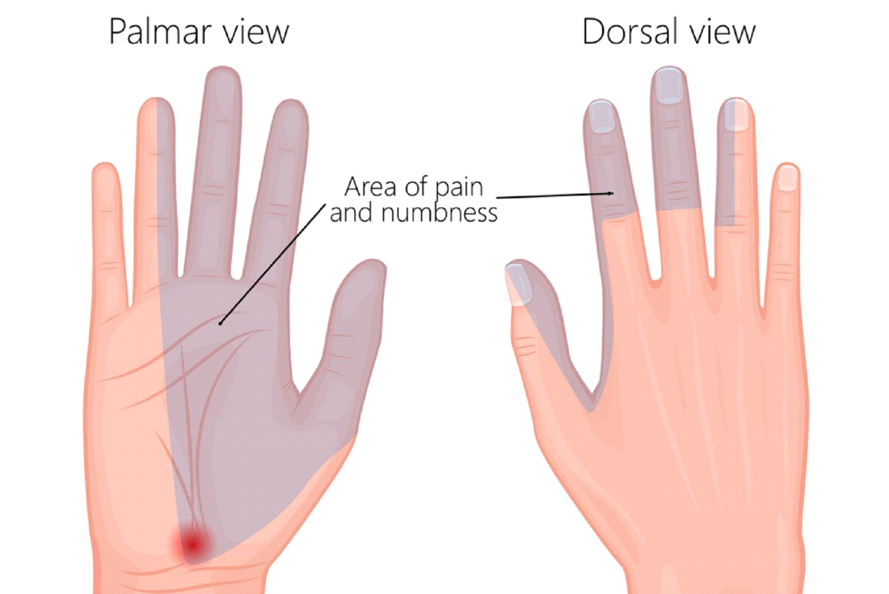 Caused by compression of the median nerve at the base of the palm